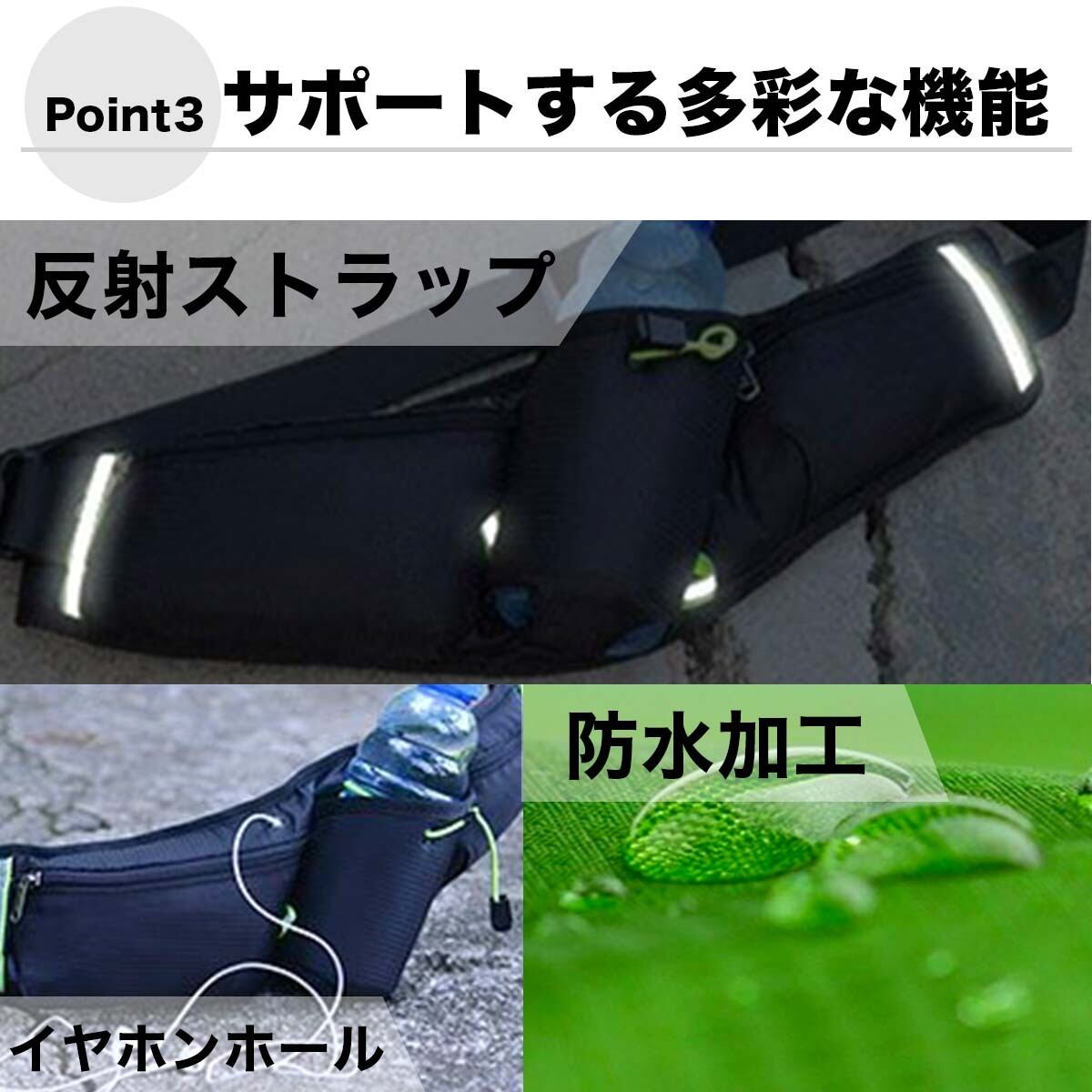 500mlペットボトル・ドリンクボトルが収納可能。ランニングやウォーキング、サイクリングやアウトドア、フェスなどでドリンクを持ち歩きたい人へ考慮された多機能ポーチです♪